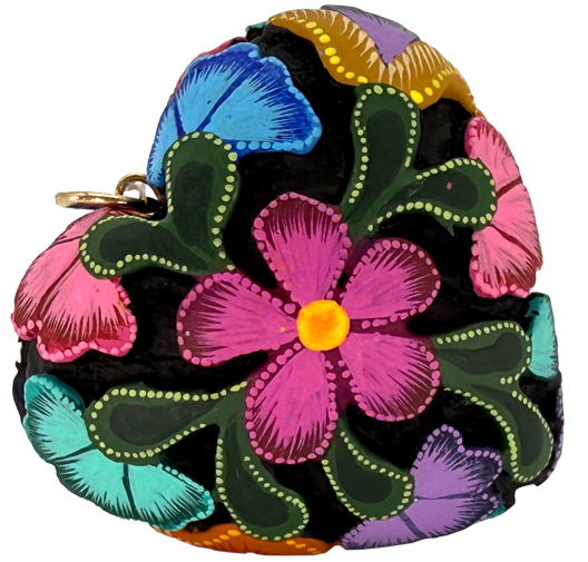 Elaborado con madera de copal, pintado y tallado a mano, con técnica de alebrije, mide 16 cm largo, 8 cm ancho.
